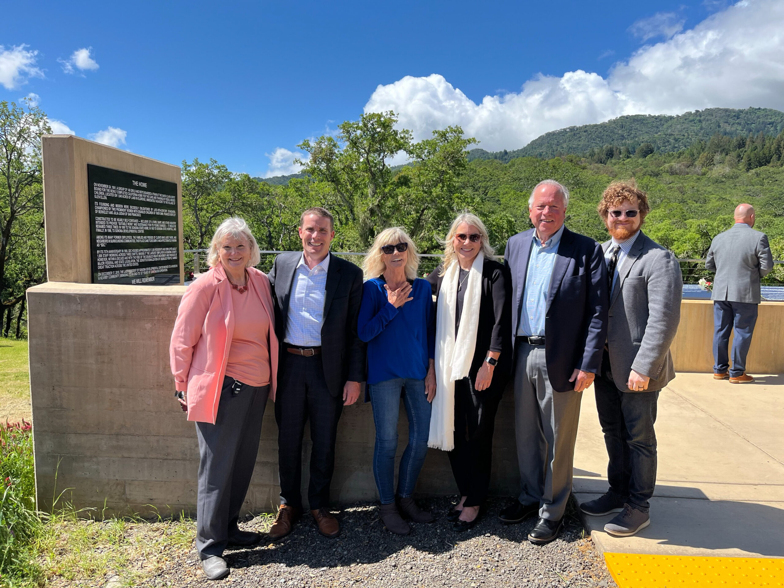 We’re remembering and honoring the lives of the people who called Sonoma Developmental Center (SDC) home. The Eldridge Memorial now stands on the SDC property. The SDC opened in 1891 and through the years supported more than 45,000 Californians with developmental disabilities and mental health diagnoses. The new memorial includes the names of more than 1,400 people laid to rest at the cemetery. Their names were carefully documented over the decades by SDC’s staff. There is a viewing platform and an accessible parking area to welcome visitors to reflect and appreciate the serenity and importance.